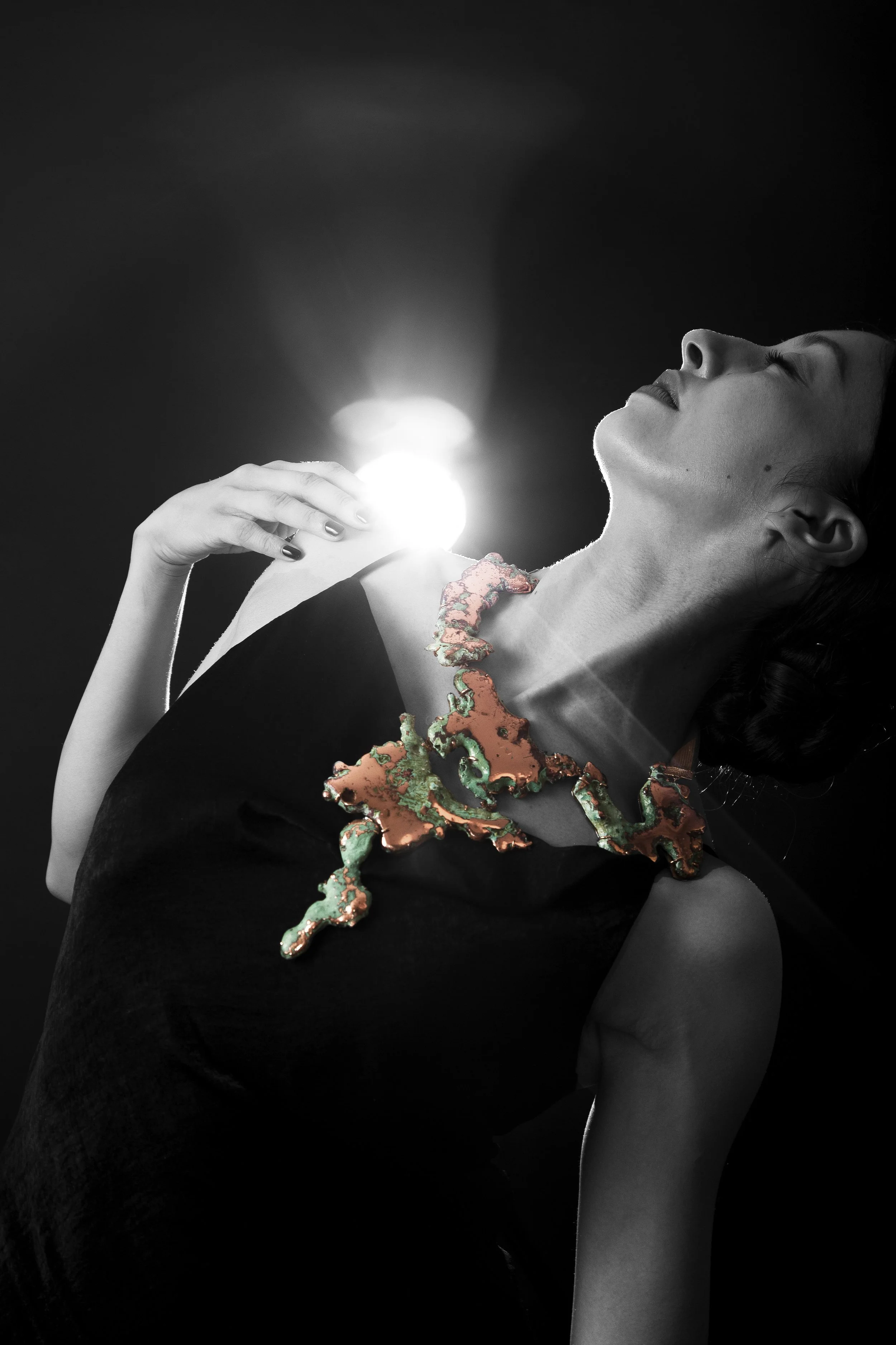 “COPPER” Necklace. Splash Copper from Michigan, U.S. set in 925 silver 18kt rose gold plated, 18kt rose gold.