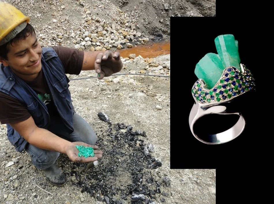 Bold in color, brilliant in quality, emeralds are luxurious while at the same time full of personality and life. The world’s best-in-class emeralds, experts agree, come from Colombia. An emerald’s natural or rough state is unique as its birth, and can be a rough crystal or icy column of green. Paloma Sanchez honors this individuality by creating a unique design around each stone. Each piece is expertly hand-crafted. The result is a collection of one-of-a-kind jewelry, not to be found elsewhere, not likely to be made ever again. True fans of Paloma Sanchez jewelry know this, and return often to her shop to purchase before the chance disappears forever. The Fresh from Colombia’s Mines: A Collection of Rough Emerald Jewelry numbers no more than 50 signed pieces – rings, necklaces, pendants, and bracelets - for the most discerning client.